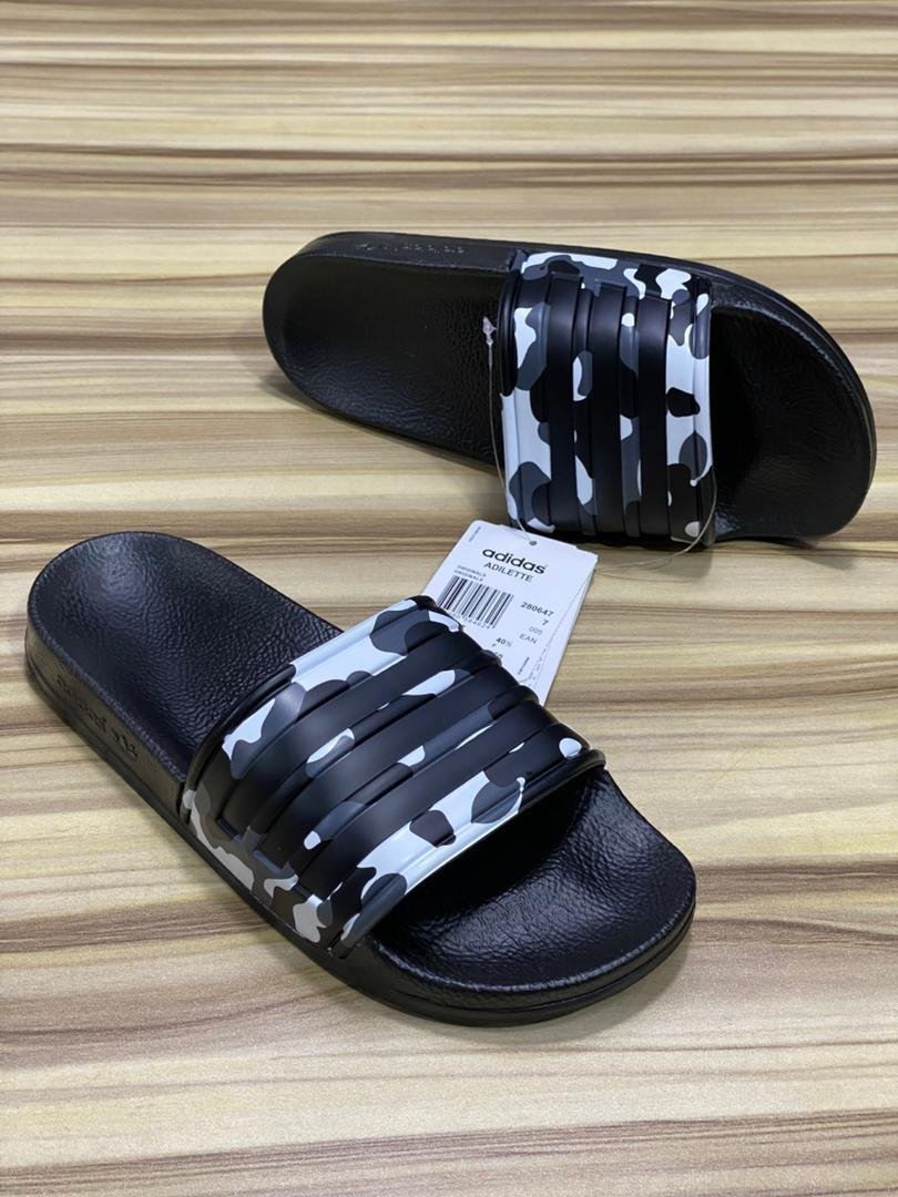 Découvrez le confort iconique et le style audacieux des claquettes Adidas Adilette. Conçues pour allier détente et tendance, ces claquettes sont un incontournable pour vos moments de loisirs. Leur sangle arbore un motif camouflage urbain distinctif, mélangeant des tons de noir, blanc et gris, ajoutant une touche moderne et élégante à votre tenue.